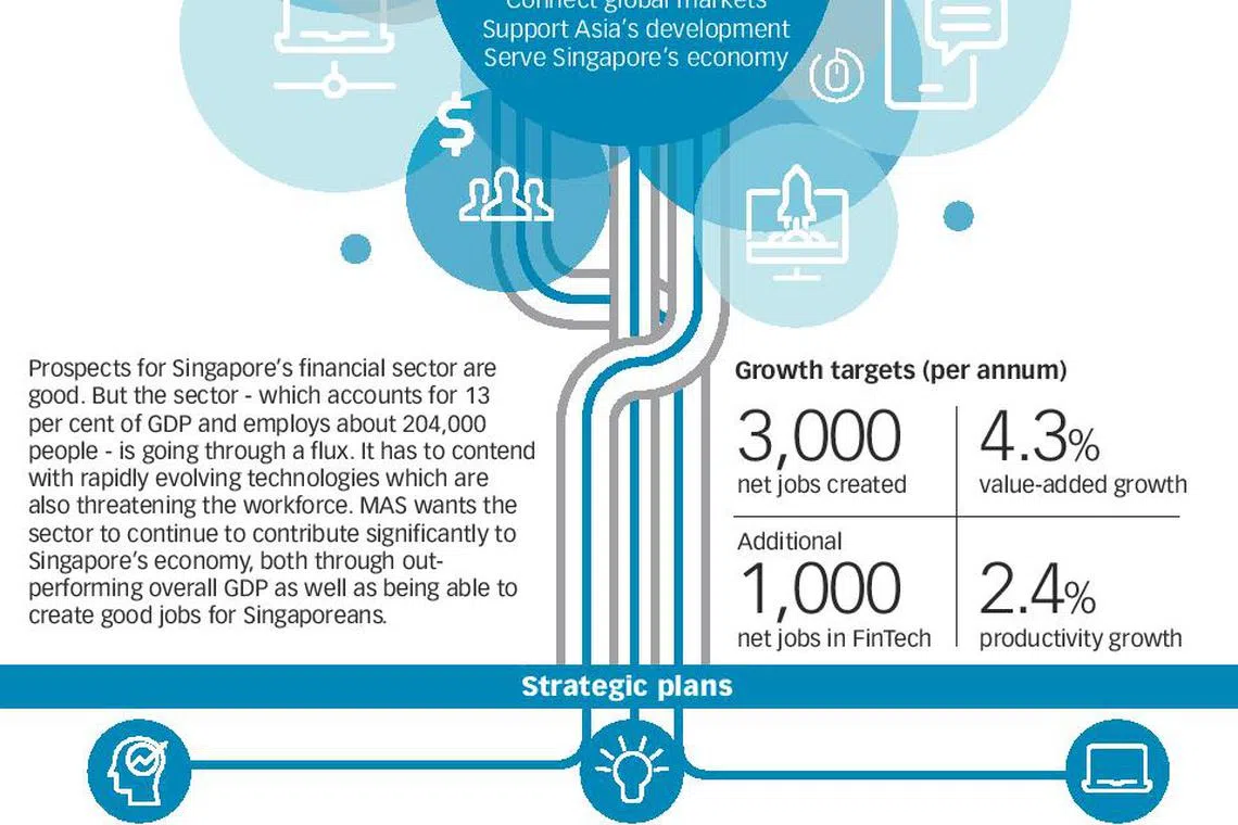 SINGAPORE'S financial sector has put out an ambitious target to continue outpacing the overall economy in growth terms - a target that also aims to take as many financial professionals along the journey as it can while managing job displacements ahead.
