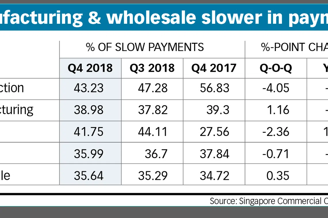 Singapore firms' payment performance worsens for third straight quarter in Q4 2018