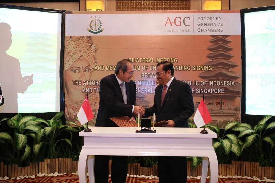 The MOU was signed by Attorney General of the Republic of Indonesia, HM Prasetyo, and Attorney-General of the Republic of Singapore, Lucien Wong, on Tuesday in Bali, Indonesia, on the occasion of a working visit to Indonesia by Mr Wong at the invitation of Mr HM Prasetyo.