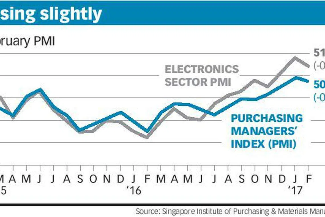 UOB economist Francis Tan attributed the slight drop in expansion rate in manufacturing PMI to the Chinese New Year effect. Factories were closed for the festive period, which meant fewer working days and thus more backlog.