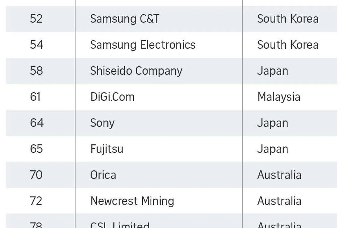 Aside from the telco, there were 22 other Asia-Pacific companies featured on the list, coming from a diverse range of sectors including food and drug retailing, telecommunications, insurance and chemicals.