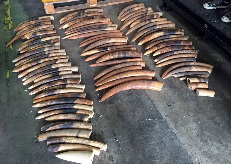The tusks, weighing 505 kg (1,100 pounds), were found along with 324 kg of pangolin scales in an air shipment on its way to Laos on Dec 12, Singapore Customs and the agriculture and veterinary agency said in a joint statement on Thursday. The boxes were labelled as synthetic wigs and had come from Nigeria, the authorities said, adding that the shipment had an estimated value of S$1.3 million.