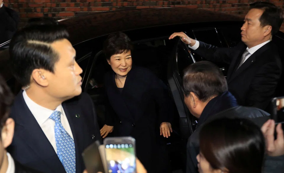 [SEOUL] South Korea's impeached ex-president Park Geun-Hye left the Blue House Sunday, issuing an apology for not completing her full term as she arrived back at her private residence.