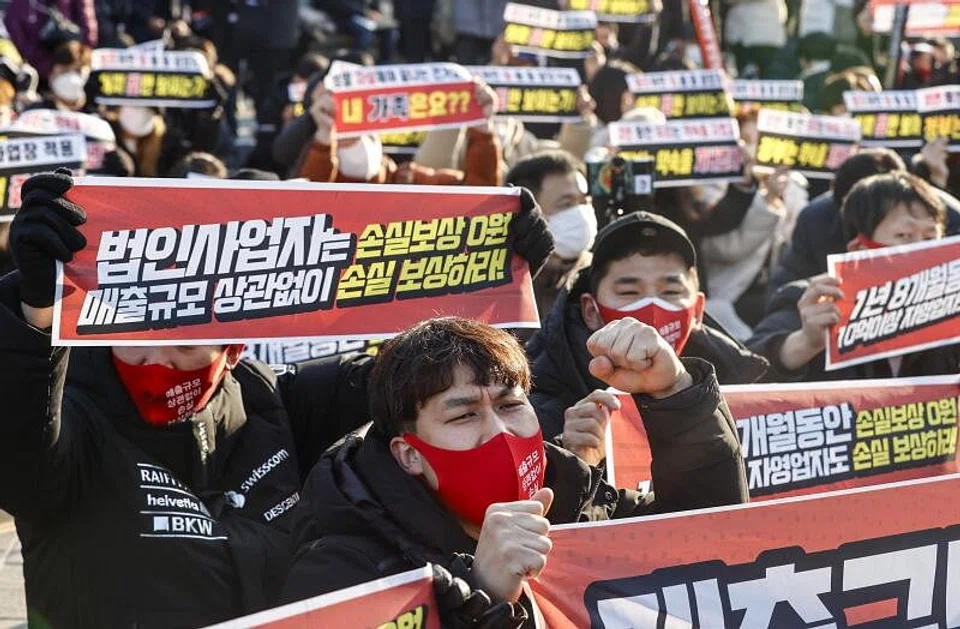 [SEOUL] SOME 300 South Korean small business owners protested in Seoul on Wednesday (Dec 22) over the return of strict social distancing rules, urging the government to compensate them for financial losses and scrap its "vaccine pass" policy.