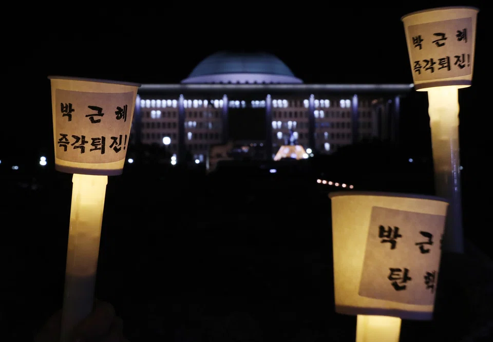 The public pressure has been crucial in pressuring enough members of Park's Saenuri Party to support the opposition-sponsored motion and provide the two-thirds majority required for adoption.
