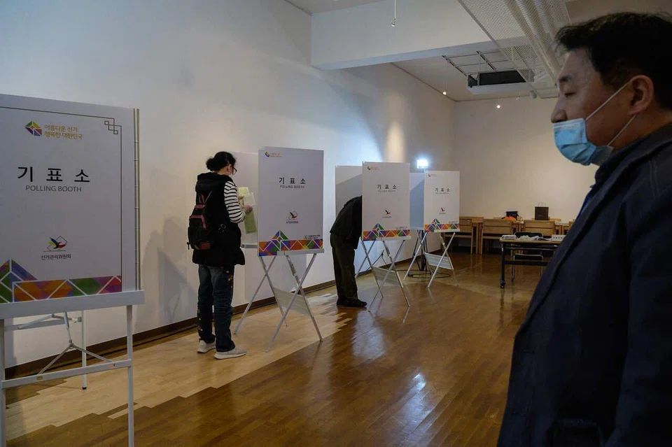The country uses a mix of first-past-the-post constituencies and proportional representation, and some high school students were voting for the first time after Seoul lowered the age limit from 19 to 18.
