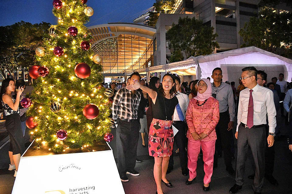 A HOST of Christmas trees on the Marina Bay waterfront promenade were lit up on Friday in a ceremony graced by President Halimah Yacob.