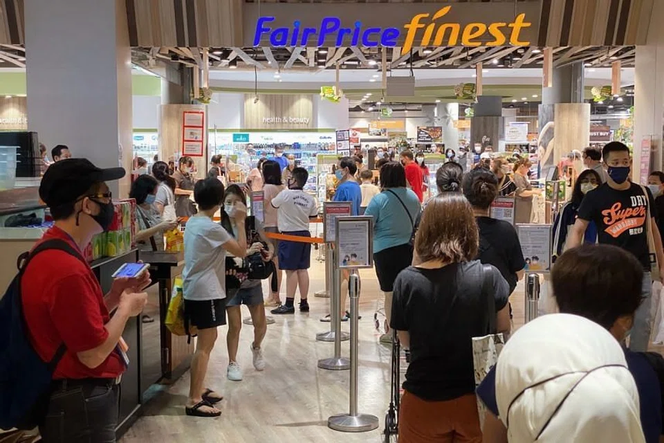 People began lining up at supermarkets in various areas including Jurong East, Waterway Point in Punggol, Nex in Serangoon, Tampines Hub and the FairPrice Finest in Marine Parade.