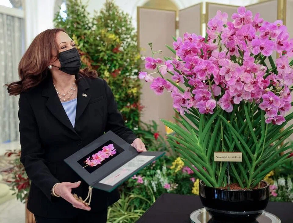 And in a trademark display of Singapore's well-known "orchid diplomacy", Ms Harris was presented with a spray of purplish pink orchids named in her honour.