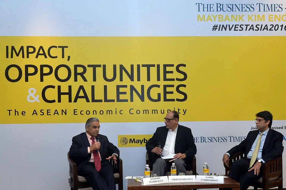 Prof Mahbubani and fellow speaker Sadiq Currimbhoy, global investment strategist at Maybank Kim Eng, shared their views with 200 attendees on what they see as opportunities, challenges and the impact on businesses and investors brought about by the establishment of the Asean Economic Community (AEC).