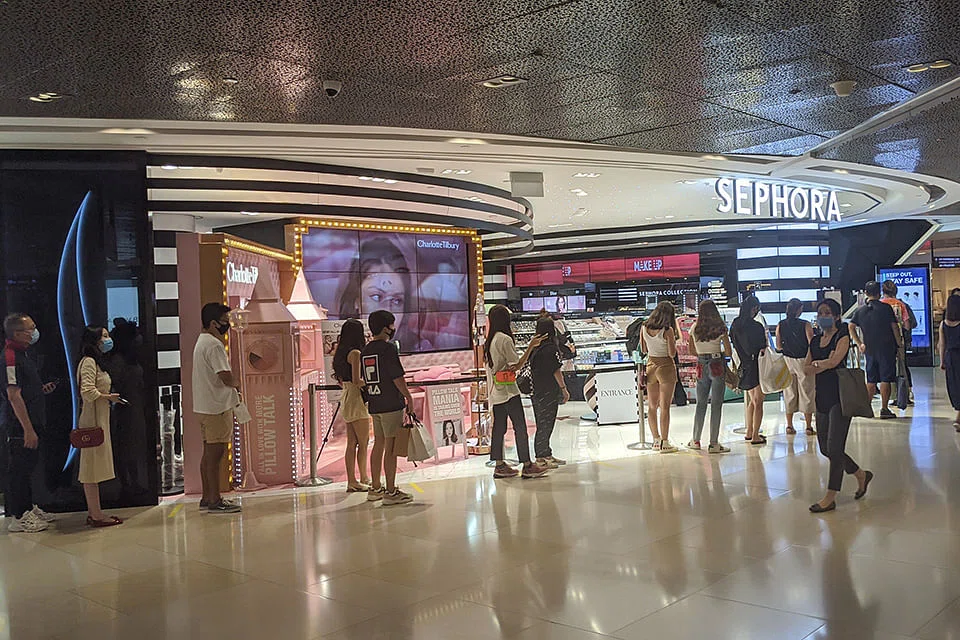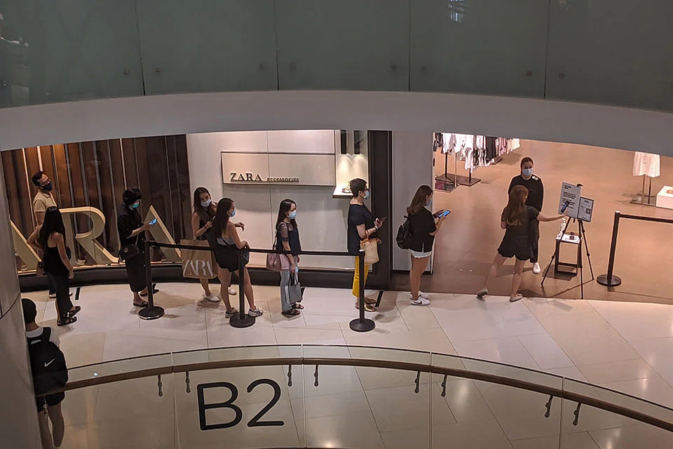 However, some retailers in Ion Orchard, such as Sephora, Zara and Louis Vuitton, had queues of shoppers waiting patiently to enter the stores.