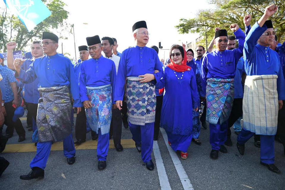 His supporters gathered and sang the national anthem, while waving blue banners - the colour of the ruling coalition - that read "we choose BN".