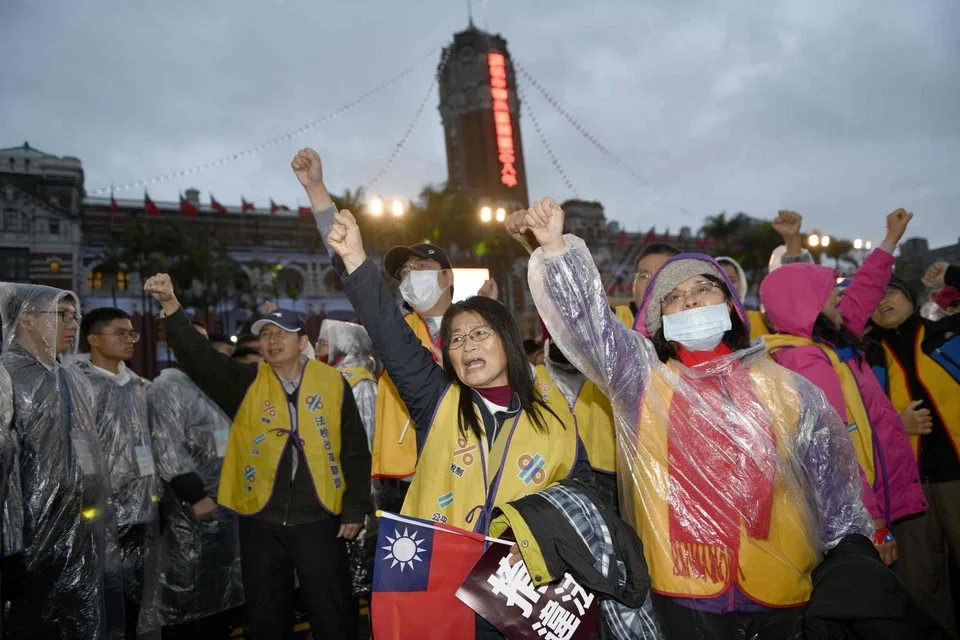 On Tuesday around one hundred demonstrators sneaked into the New Year's Day flag raising ceremony in front of the presidential palace attended by President Tsai Ing Wen.