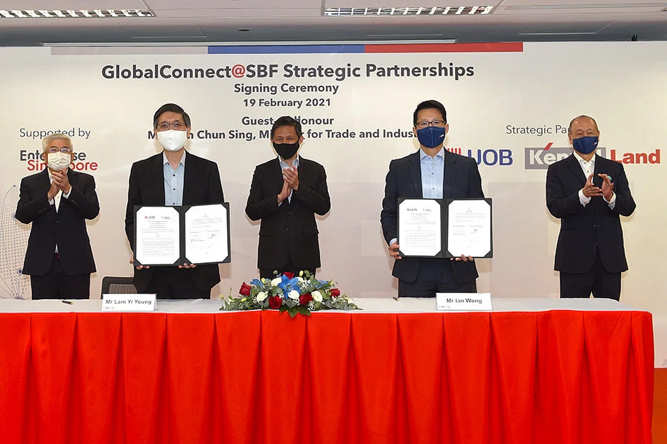 Speaking at the GlobalConnect@SBF Showcase, Minister for Trade and Industry Chan Chun Sing noted that the exhibited companies fell into three categories: small and medium-sized enterprises (SMEs) partnering each other, SMEs partnering Enterprise Singapore (ESG) or the Singapore Business Federation (SBF), and smaller companies partnering large enterprises.