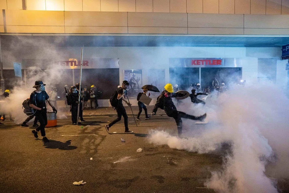 [HONG KONG] Hong Kong descended into chaos on Sunday night as riot police fired tear gas and rubber bullets at anti-government protesters hours after China's office in the city was daubed with eggs and graffiti in a vivid rebuke to Beijing's rule.