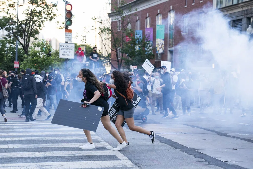 Tear gas and flash bang devices were used against crowds who had gathered outside President Donald Trump's official residence, chanting, lighting fires and holding up protest signs, AFP reporters said.