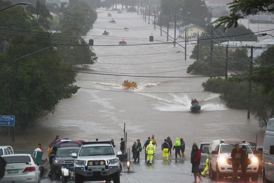 TENS of thousands of Australians were ordered to flee their homes on Monday (Feb 28), as torrential rain sent floodwaters to record levels, leaving residents stranded on the rooftops of their homes.