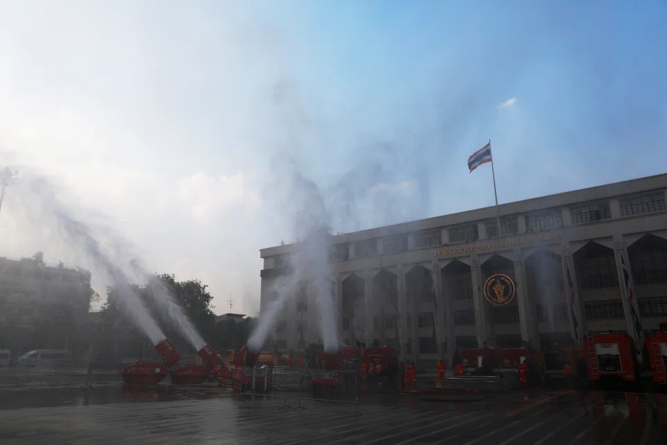 [BANGKOK] The Thai capital fired water cannon into the hot tropical air and hosed down streets on Monday as authorities handed out masks in a bid to combat air pollution in one of the world's most visited cities which has been blanketed by smog since Saturday.