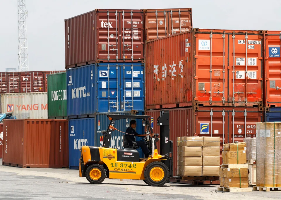 Imports in March fell 5.89 per cent after rising 1.47 per cent in February. Economists had expected a flat performance. Many imported materials are assembled into completed goods and shipped out again.