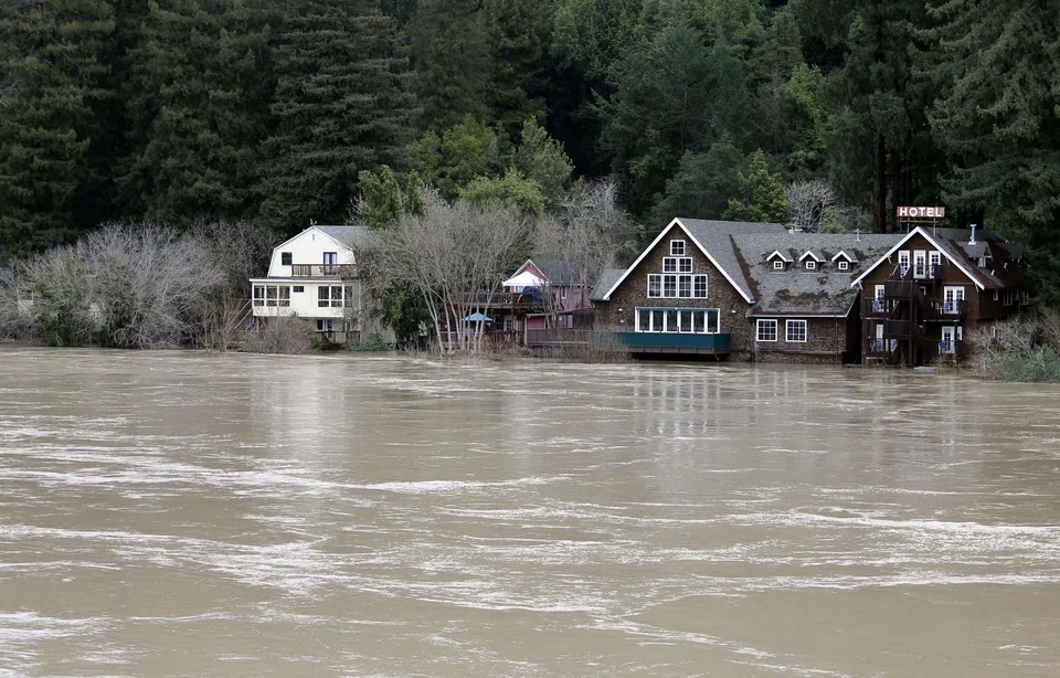 Just north of San Francisco, rains caused the Russian River in Sonoma County to flood early on Monday, the county Sheriff's department said.