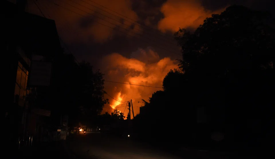 The night sky was bright with an orange glow as huge fires raged and the area continued to shake every few minutes. Flying debris could be seen from three kilometres (two miles) away, an AFP photographer said, and military officials warned residents not to touch anything that might be an unexploded device.