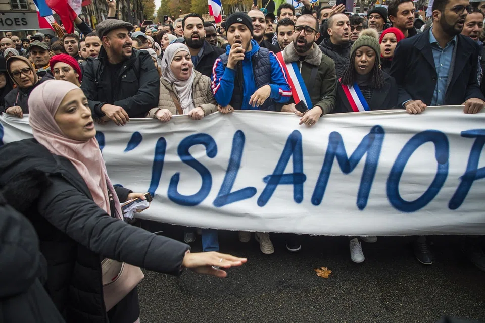 In the southern city of Marseille Sunday, several hundred people staged a similar demonstration, carrying placards that read "Islamophobia kills" and shouting "We are all children of the Republic".