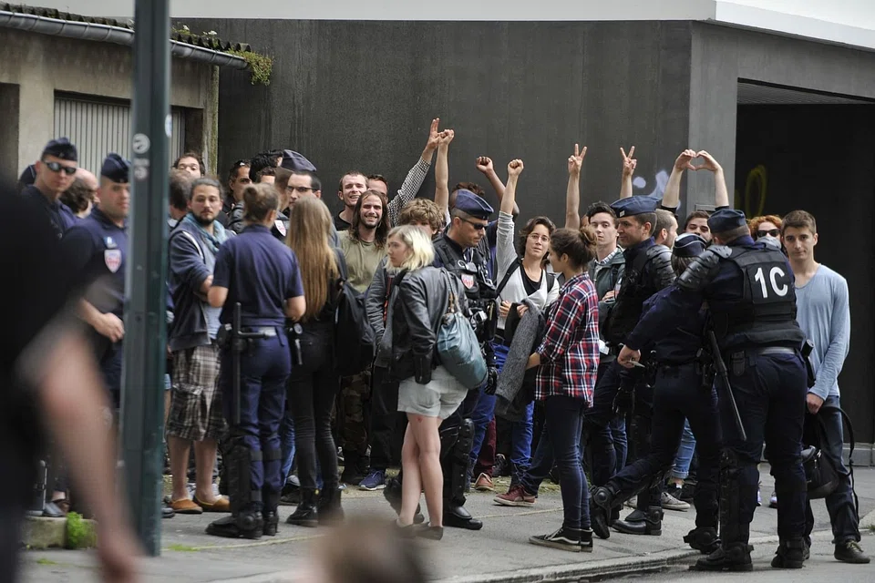 Replacing the clashes of earlier protests, in a months-old campaign against the Socialist government's labour reforms, were scenes reminiscent of the 1960s with protesters handing roses to police officers.