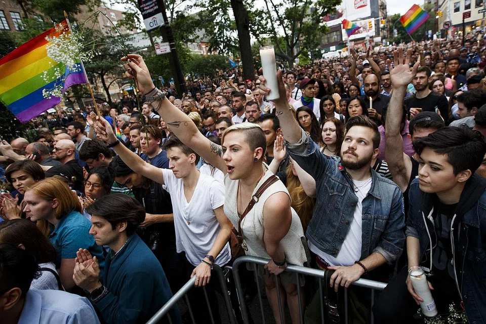 [NEW YORK] Thousands of people gathered at the birthplace in New York of the gay rights movement Monday to honor the Orlando victims, demand tolerance and call for tighter gun control.