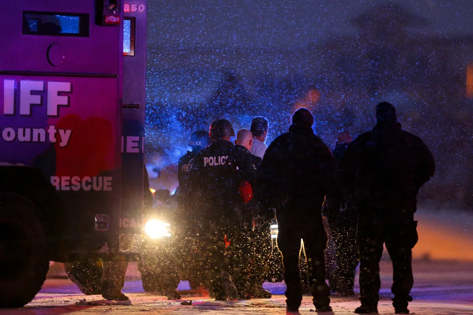 A sheriff's department SWAT team with at least one armored vehicle and several ambulances had also been on standby, as the evening drew in on the snowy scene.