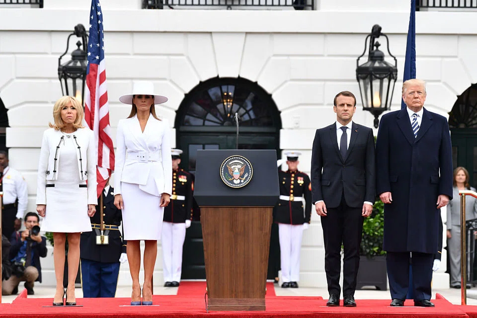 Hailing the "very important" visit, Mr Macron then rolled into the West Wing from Lafayette Square - named after the storied French general who fought in America's war for independence - beneath dozens of fluttering tricolour French flags and before a full US military colour guard.
