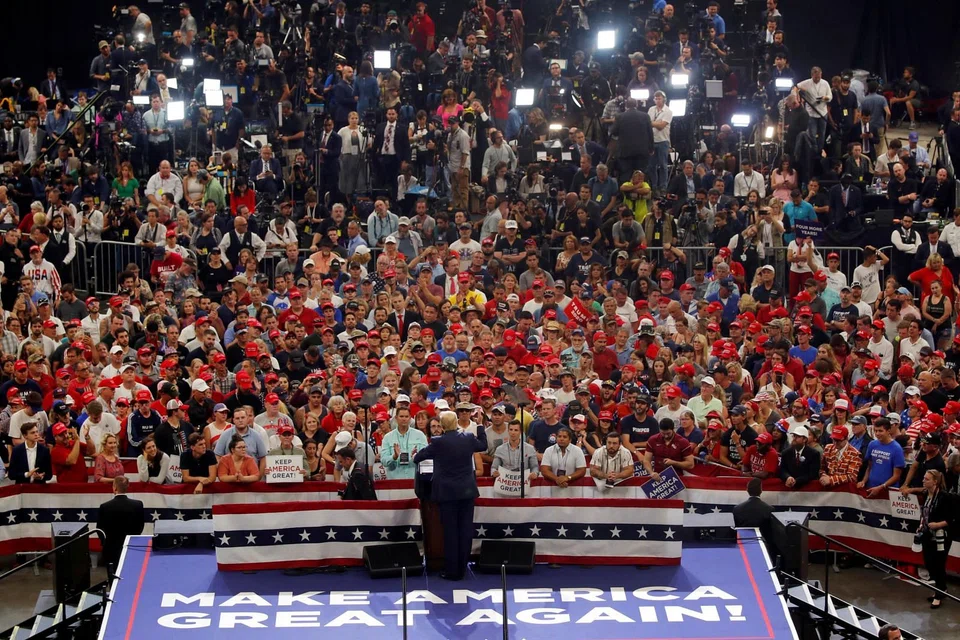 Striking a darker note, Mr Trump repeatedly encouraged the crowd to boo journalists covering the event, calling them "fake news."