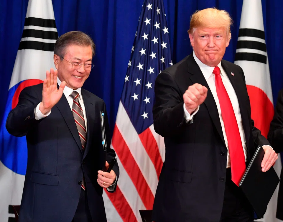 Mr Trump and Mr Moon, meeting on the sidelines of the G20 summit in Buenos Aires, "reaffirmed their commitment to achieve the final, fully verified denuclearisation" of North Korea, Trump spokeswoman Sarah Sanders said.