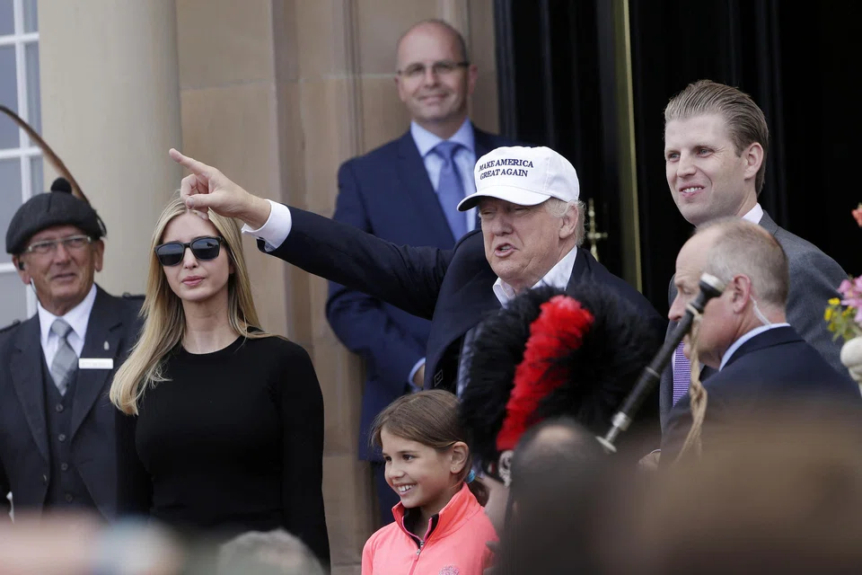Mr Trump was visiting the golf resort in his family's ancestral homeland to showcase his far-flung business empire.