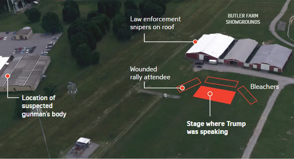 Trump, 78, had just begun a campaign speech in Butler, Pennsylvania, about 50 km north of Pittsburgh, on Saturday (Jul 13) when shots rang out, hitting the former president’s right ear and streaking his face with blood.