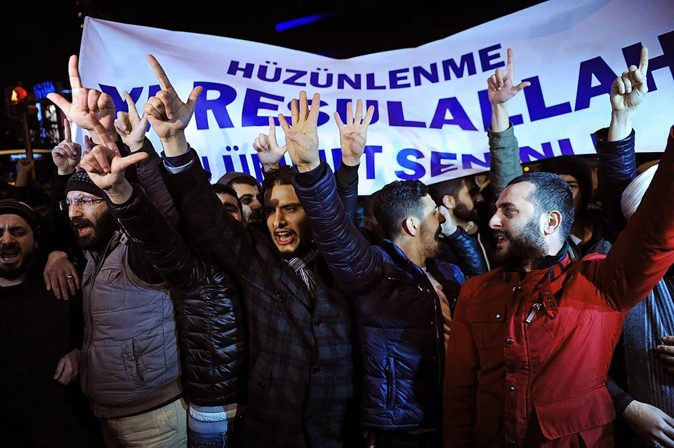 Dozens of Muslims staged an angry protest against the paper late evening in Istanbul, brandishing slogans like "Our dear Prophet, don't be upset, Muslims are with you" and "Cumhuriyet will be brought to account".