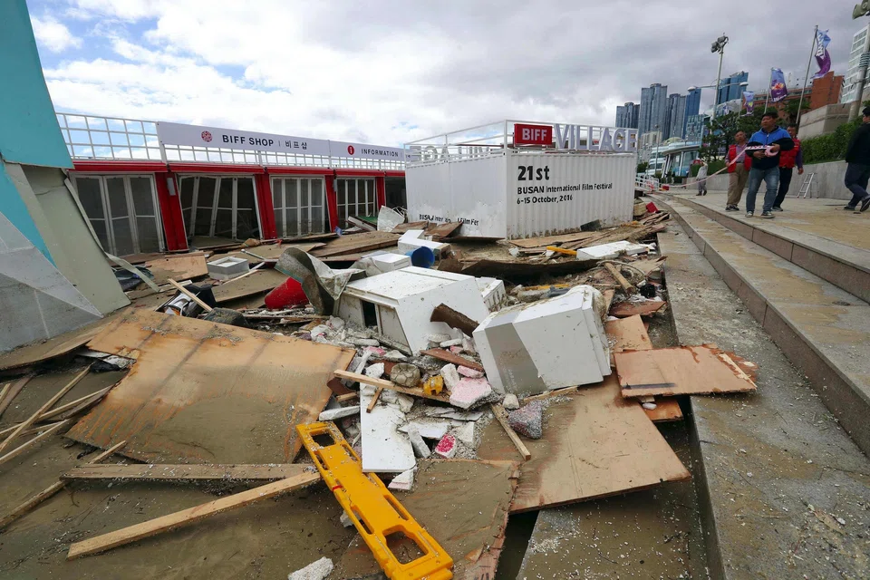 The storm also disrupted preparations for Asia's largest movie showcase, the Busan International Film Festival, which was scheduled to open Thursday evening.