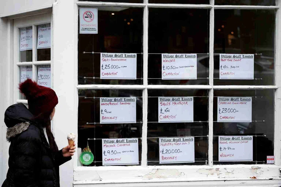 Official data showed 547,000 job vacancies in Britain in the three months to November, down almost a third on a year earlier.