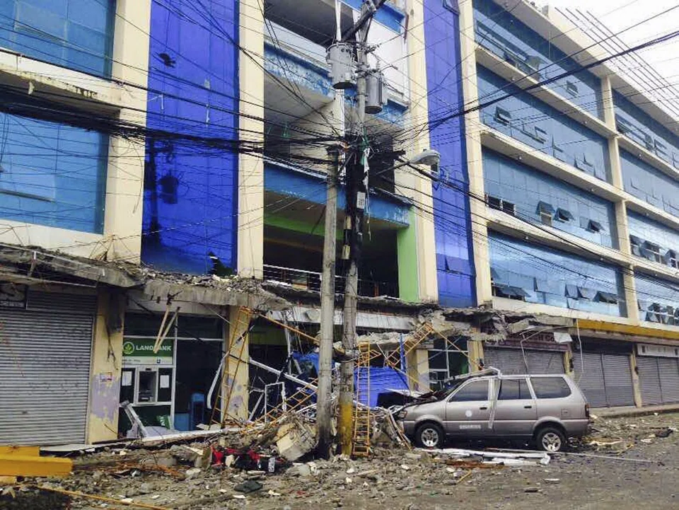 The quake damaged many buildings, including in the two-storey Gaisano mall - one of the city's largest structures - and shattered windows, sending sharp shards and heavy rubble into the street.