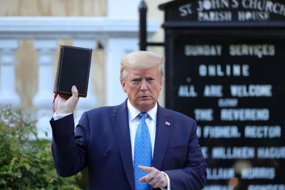 The sweep allowed Mr Trump to stage a photo opportunity at a nearby church in which he held up a copy of the Bible. A fire set during earlier protests had caused minor damage at the church.