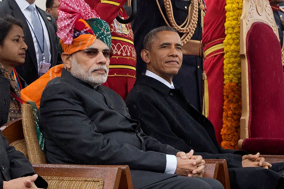 Earlier in the day, at the invitation of Prime Minister Narendra Modi, Mr Obama was the first US president to attend India's annual Republic Day parade, a show of military might that has been associated with Cold War anti-Americanism.