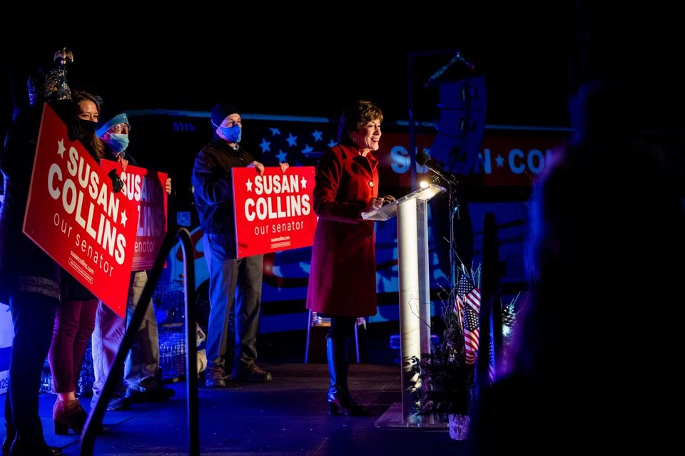 Their chances in the Senate were vastly improved by the come-from-behind victory of Senator Susan Collins of Maine, a New England centrist largely written off as a loss before Election Day. Ms Collins' resounding performance in a state also carried by former Vice-President Joe Biden defied national trends and she avoided a protracted fight involving the state's ranked-choice voting system by clearing a 50 per cent threshold of support.
