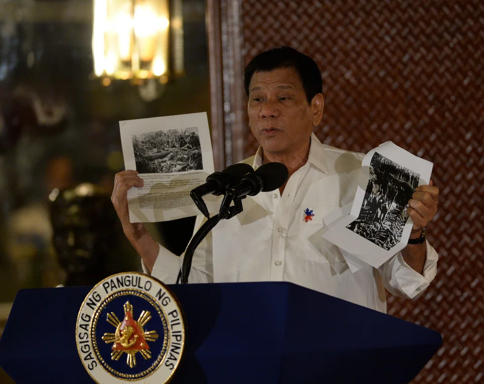 Mr Duterte, 71, has said he is "not a fan" of the United States and on Monday explained his demand by showing pictures of US troops killing Muslims as America took control of its new colony in the early 1900s.