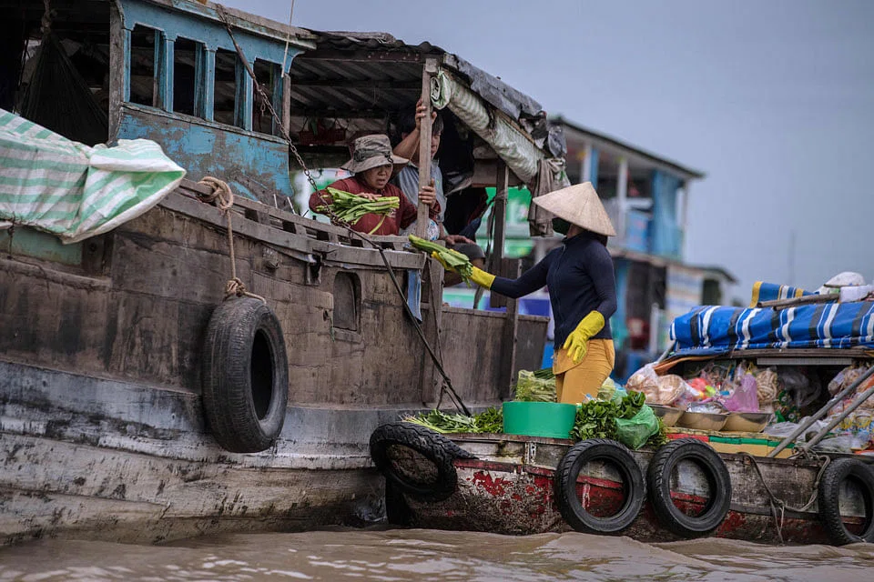 Surrounded by dusty old scales on his cluttered houseboat, Nguyen Van Ut says vendors are giving up their boats for better lives on terra firma where supermarkets draw the traders who once thronged the waterway.