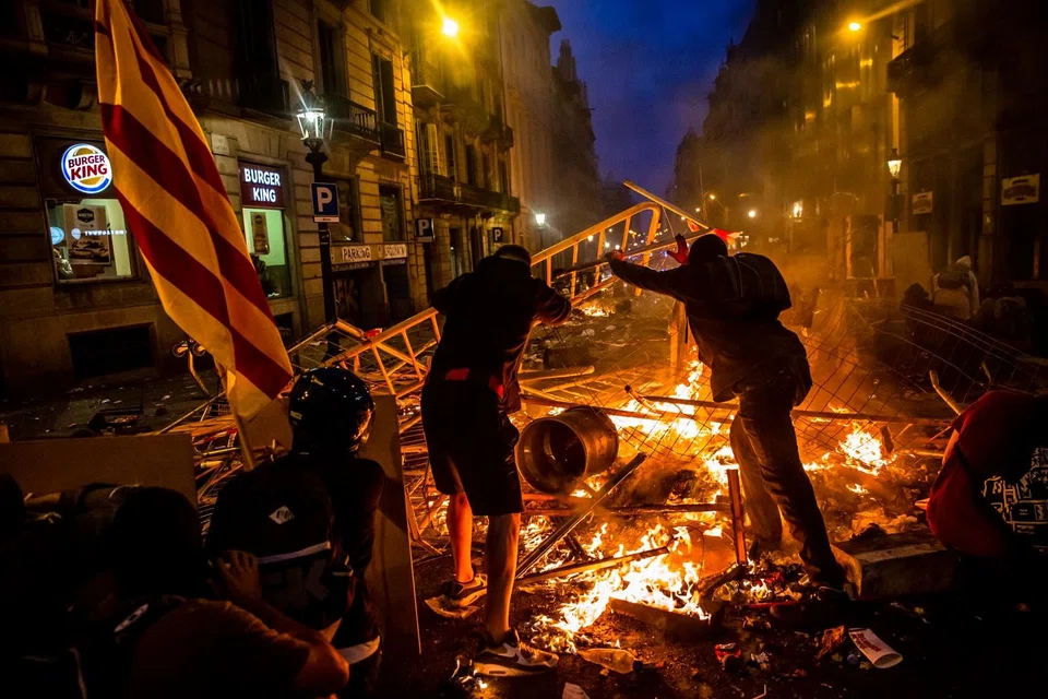 [BARCELONA] Violent clashes escalated in Barcelona late Friday, as radical Catalan separatists hurled rocks and fireworks at police, who responded with teargas and rubber bullets, turning the city centre into a chaotic battleground.