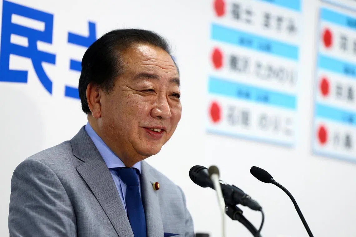 Former prime minister Yoshihiko Noda is the leader of the biggest opposition group, the centre-left Constitutional Democrats.