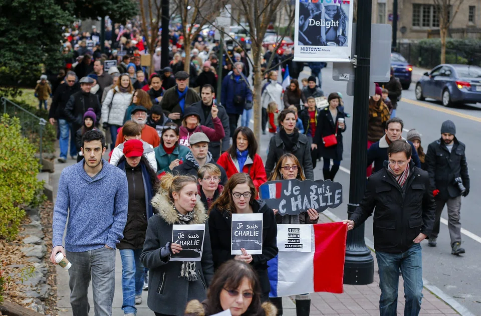 From Berlin to Washington and Jerusalem to Beirut, crowds waved French flags and sang France's national anthem "La Marseillaise" following the Islamist attacks that killed 17 people, most at the Paris offices of satirical magazine Charlie Hebdo.