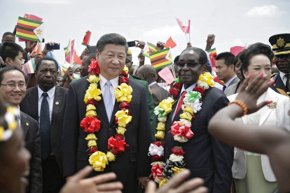 Mr Xi - accompanied by his wife Peng Liyuan - arrives in South Africa after a brief visit to Zimbabwe, where Chinese projects have helped support an economy plunged into crisis under President Robert Mugabe's rule.