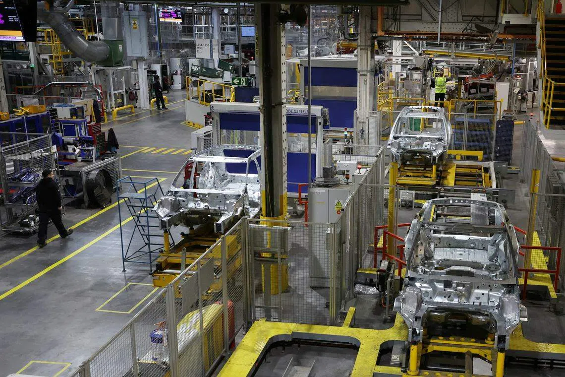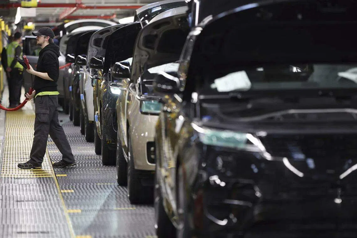 [LONDON] Britain’s Jaguar Land Rover on Monday reported sharply lower quarterly sales after the luxury carmaker halted shipments to the United States in response to President Donald Trump’s tariffs.
