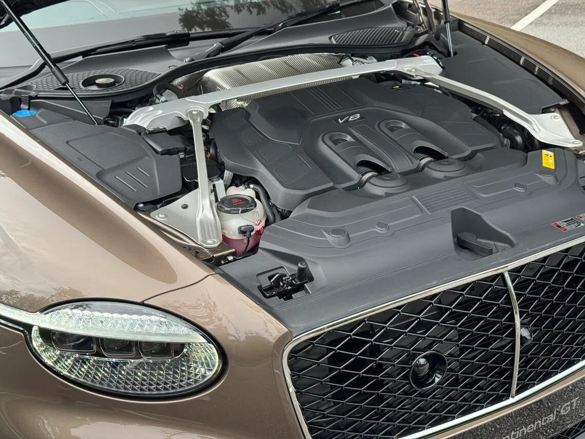 Bentley Continental GT V8 Hybrid Engine 3,996 cc turbocharged V8 Engine output 519 hp, 770 Nm Electric motor 190 hp, 450 Nm System power/torque 680 hp, 930 Nm Battery type/capacity Lithium-ion/25.9 kWh Charging time/type 2.75 hours (11kW AC) Electric range 84 km (WLTP) 0-100 kmh 3.7 seconds Top speed 270 kmh Fuel efficiency 10.3 L/100 km (combined, estimated) Efficiency 19.8 kWh/100 km (estimated) Agent Wearnes Automotive Price S$1,208,000 without Certificate of Entitlement Available Now