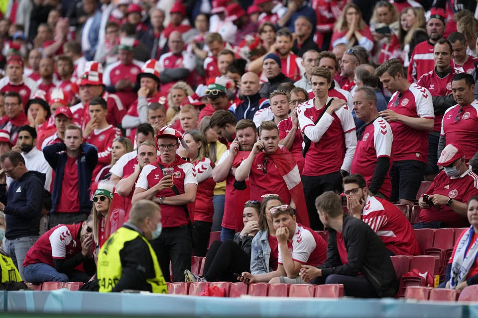 The fans did their part as well to show their support in whatever small way they could. Even as they frantically checked their phones for updates, Finland supporters started chanting "Christian! Christian", which was followed by the Danish spectators shouting "Eriksen! Eriksen!"